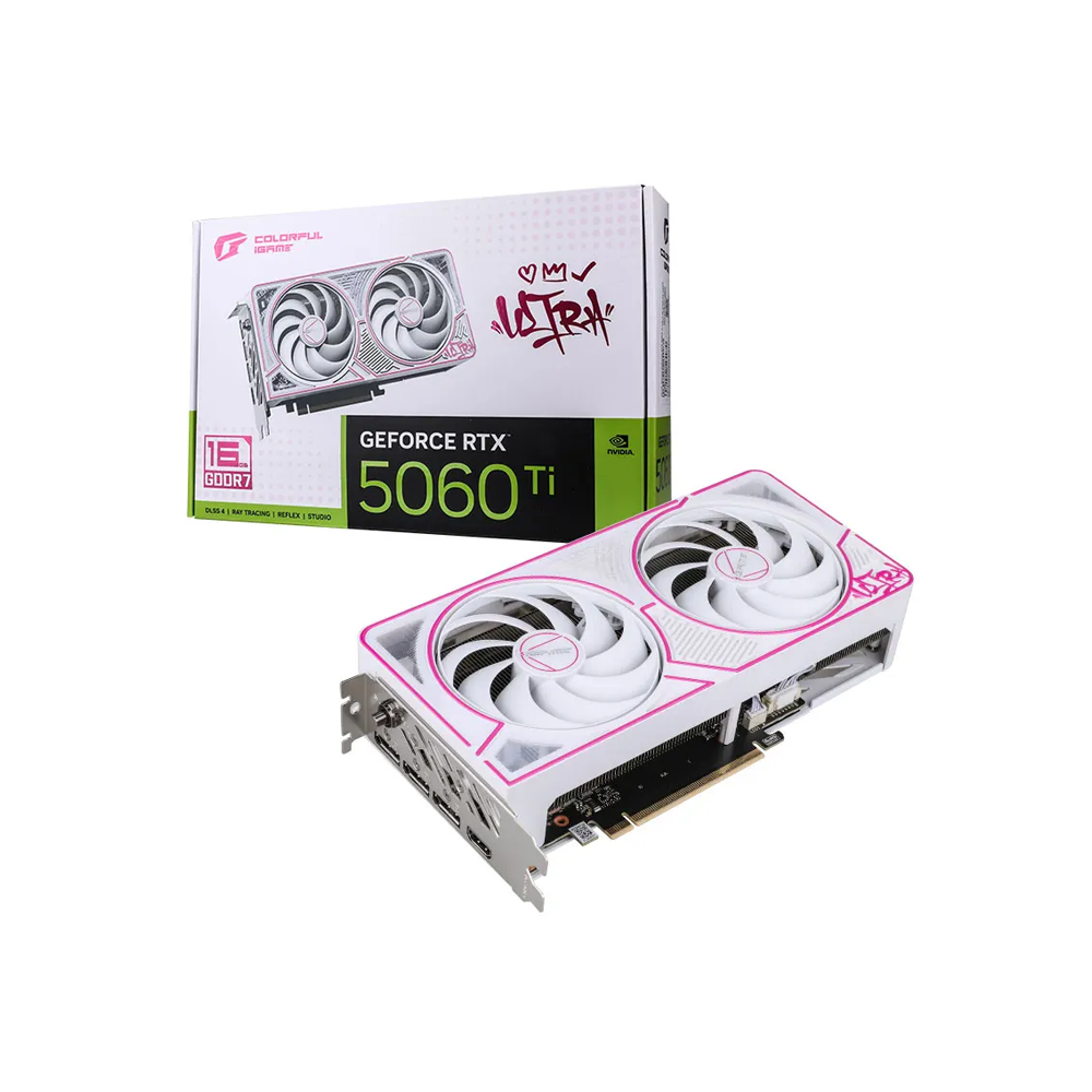 The Colorful iGame GeForce RTX 5060 Ti Ultra W DUO OC 16GB-V offers stunning performance with 16GB GDDR7 memory, 4608 CUDA cores, and up to 2572MHz boost clock. Engineered for gamers and creators, it delivers next-gen visuals, real-time ray tracing, and ultra-efficient rendering on a 128-bit interface.
