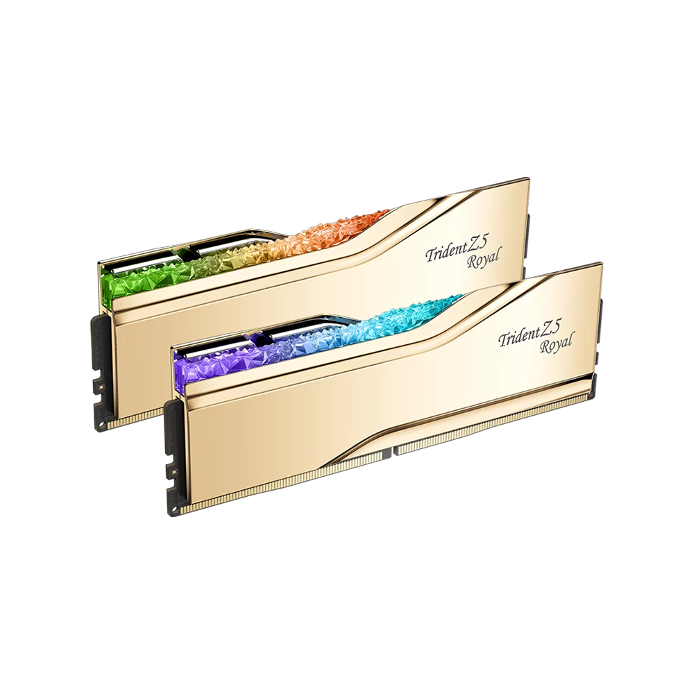 Premium Heatspreader with Crystalline RGB Lighting - The Trident Z5 Royal features a luxurious mirrored heatspreader and radiant crystalline RGB bar, combining aesthetics and thermal efficiency. Fully customizable lighting via G.SKILL software enhances visual appeal while ensuring your memory operates cool and stable under high-performance workloads.