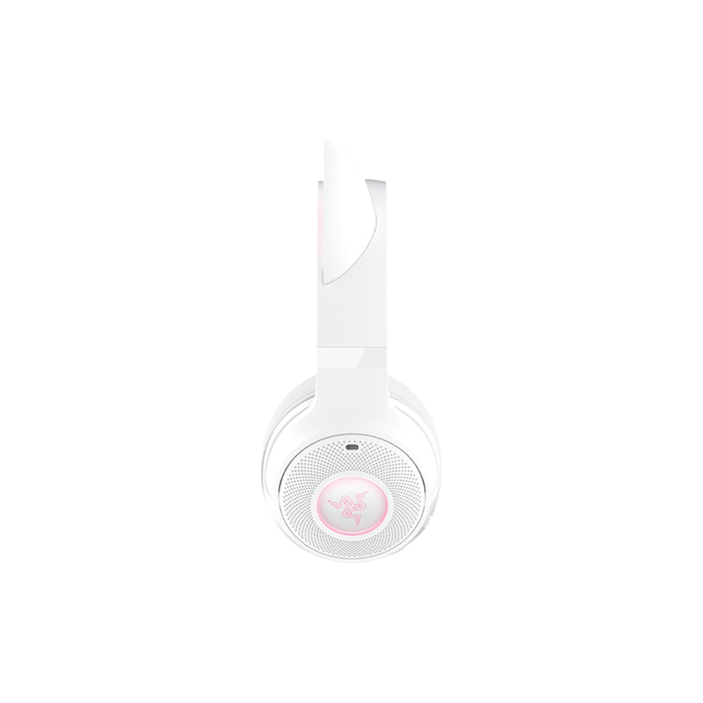Razer Chroma RGB Customizable Lighting - The Razer Kraken Kitty V2 BT Headset features Razer Chroma RGB with 16.8 million colors and countless effects. Customize kitty ears and earcups to match your style, enhancing gaming and streaming aesthetics with vibrant, dynamic lighting for a personalized, immersive experience.