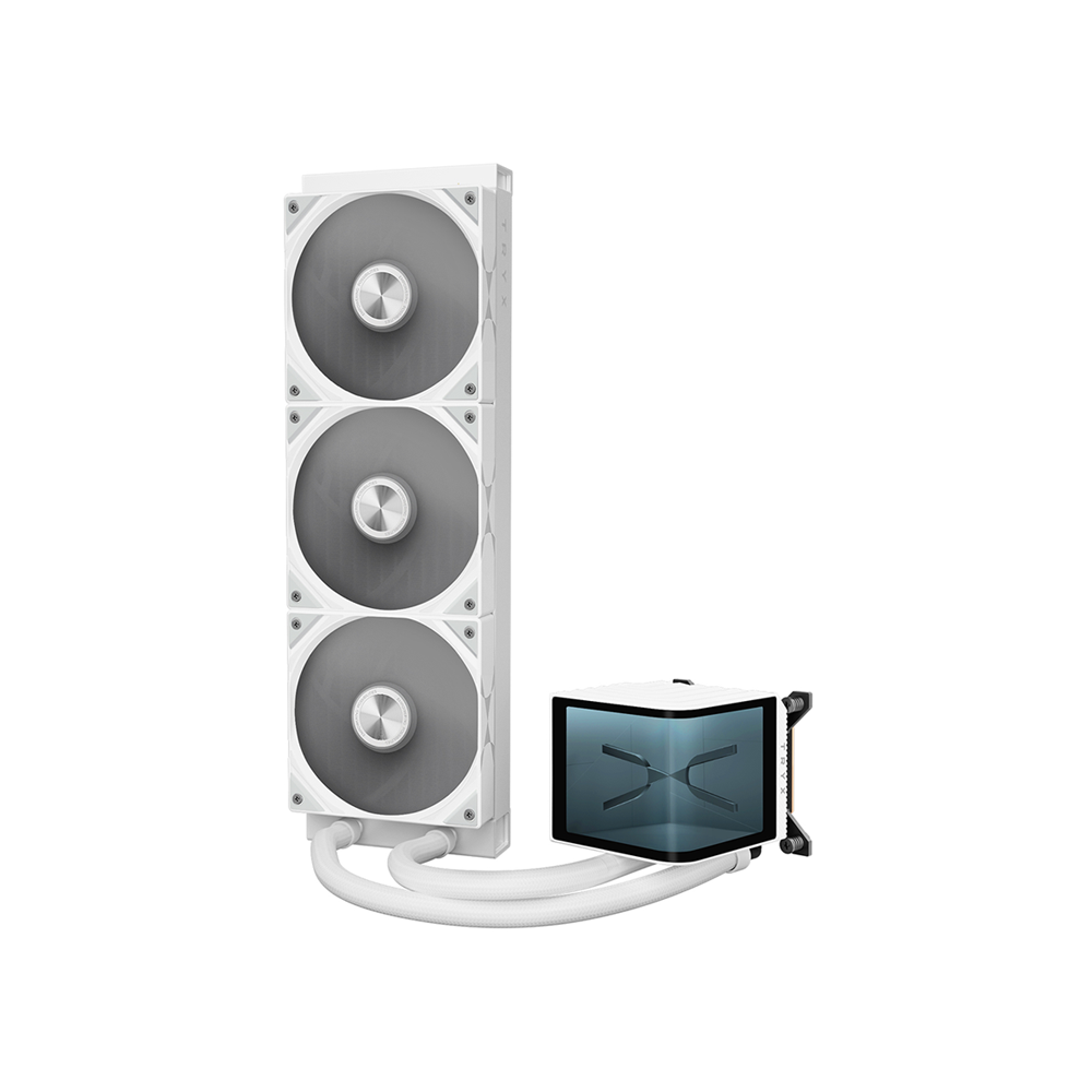 The TRYX PANORAMA 360mm L-shaped AMOLED Screen Liquid Cooler [Black/White] offers exceptional CPU cooling performance with a 360mm radiator and innovative L-shaped AMOLED screen. This AIO liquid cooler combines high-efficiency cooling with customizable ARGB lighting, perfect for high-end gaming and professional PC builds.